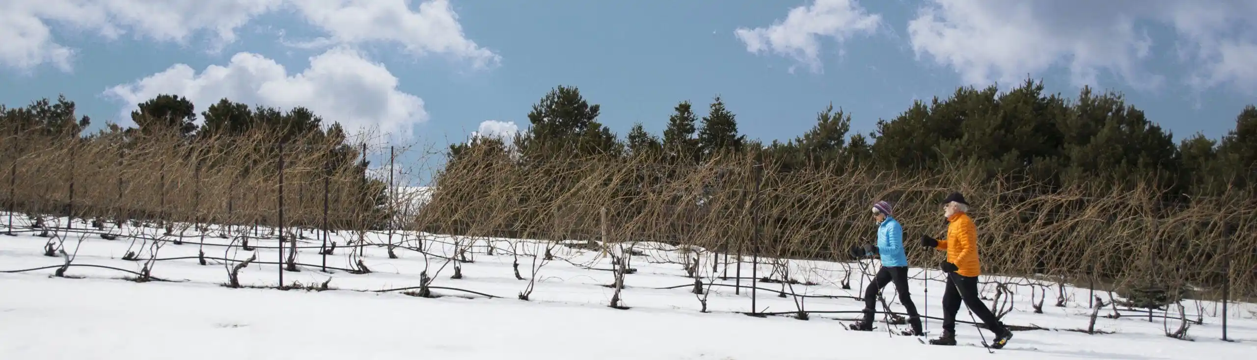 Experience the enchanting winter wonder of Black Star Farms Suttons Bay as you traverse our scenic trails. Then, indulge in a warming glass of mulled wine on our heated Terrace Patio. After your outdoor adventure, treat yourself to a flight of wine or a finely crafted cocktail in the tasting room. This is your perfect opportunity to embrace the beauty of our estate’s woods, orchards, and vineyards, all beautifully blanketed in snow.