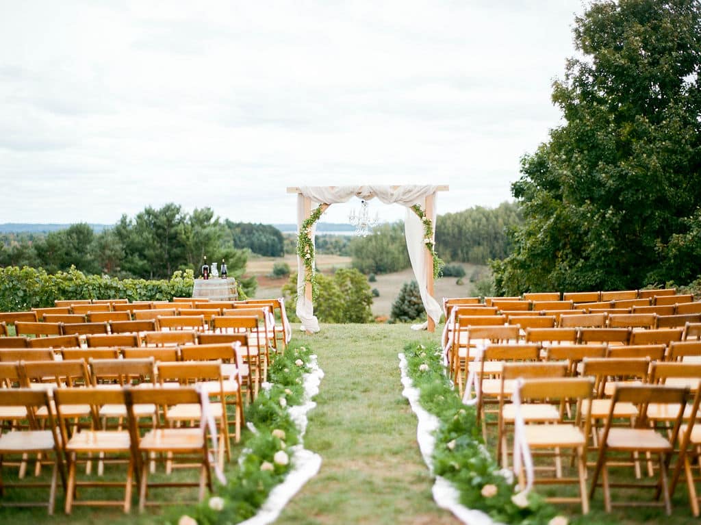 Vineyard wedding overlooking Grand Traverse Bay at Black Star Farms near Traverse City